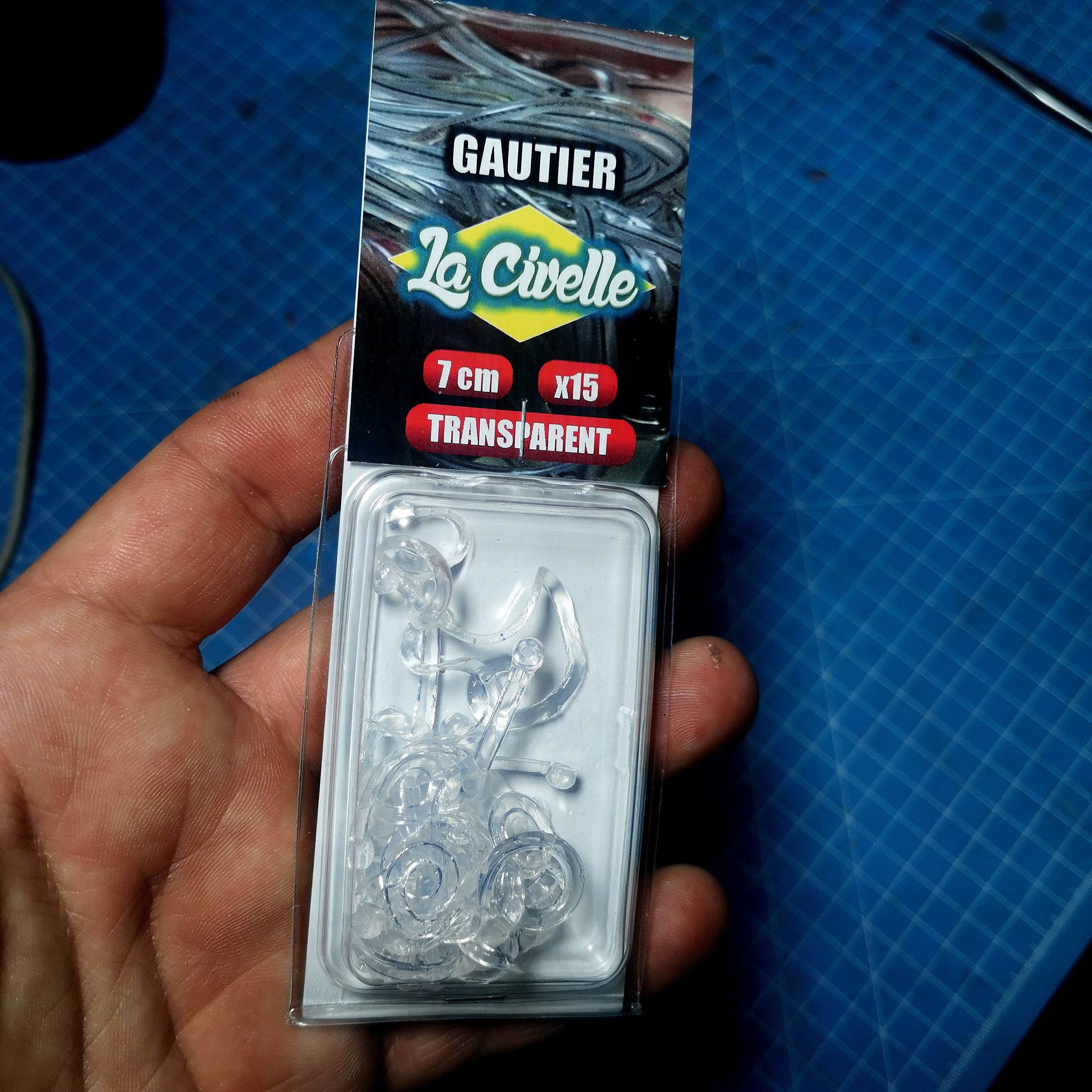 Étant donné que la pêche à la civelle est interdite, chez Gautier, nous avons conçu une imitation spécialement adaptée pour être montée sur une ligne mitraillette, avec un buldo ou un plomb.